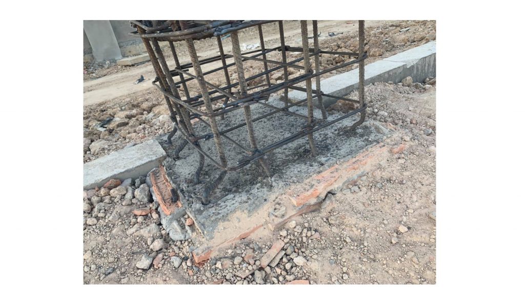 เมื่อขาดการทำงานในขั้นตอนข้างต้นให้ดี ผลเสียที่จะตามมาก็อย่างที่เห็นในภาพเลยครับ เพราะ เมื่อจะทำการก่อสร้างส่วนของโครงสร้างเสาตอม่อ แต่ พิกัดนั้นไม่ถูกต้องตรงตามที่สถาปนิกและวิศวกรได้ทำการออกแบบเอาไว้ตั้งแต่ทีแรก ผรม ก็เลยตัดสินใจทำการแก้ปัญหาโดยทำการดุ้งเหล็กเสริมหลักในเสาตอม่อ เพื่อให้ตำแหน่งของเหล็กเสริมหลักในเสาตอม่อนั้นสามารถที่กลับมาอยู่ในมีทิศทางและตำแหน่งที่ถูกต้องได้ ซึ่งการแก้ปัญหาด้วยวิธีการดังกล่าวนั้นถือได้ว่าผิดต่อหลักการทางด้านวิศวกรรมโครงสร้างอย่างรุนแรงมากๆ เลยนะครับ