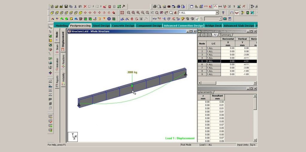 หากเราทำการวิเคราะห์โครงสร้างใหม่ (ดูรูปที่ 2) โดยใช้ค่าคุณสมบัติต่างๆ ข้างต้นจะได้ค่าการเสียรูปใหม่เท่ากับ